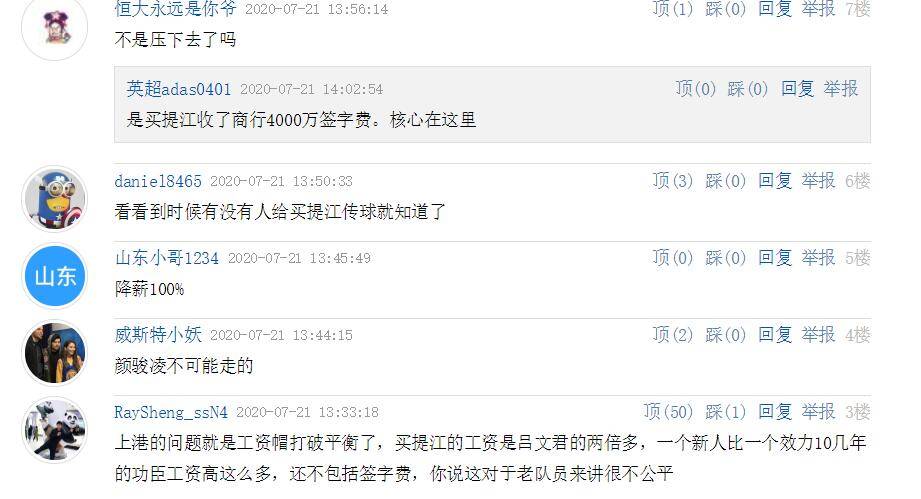 问题恰恰出在了不一样上!根据网友的评论显示,矛盾点在上港引进的新援买提江,他获得了1200万的顶薪+4000万的签字费。而这些球员,想要向买提江看齐。