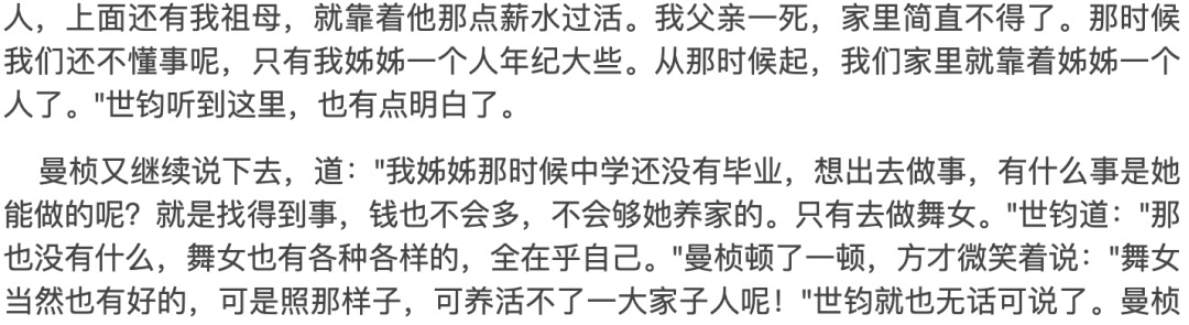 说完妹妹,我们再来看看姐姐顾曼璐。这更是一个悲情角色,为了生计不得不去当舞女,后来又嫁给了不靠谱的祝鸿才。原著中寥寥数笔就勾画出了她的悲惨经历。