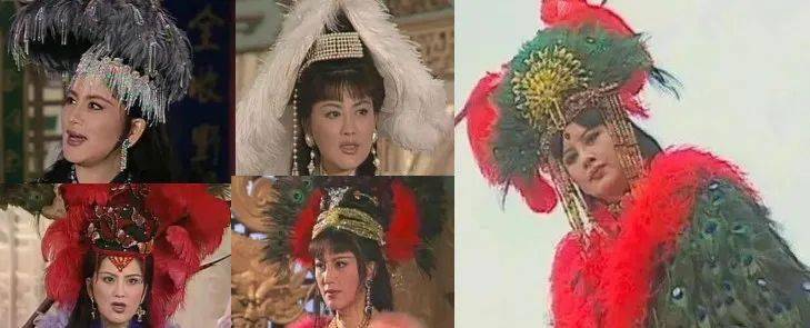 还记得童年时看过一部亚视的《穆桂英大破天门阵》,里面焦恩俊演杨宗保,陈秀雯饰穆桂英,烧火丫头杨排风是文颂娴,配角里最抢戏的是宫雪花,她演的萧燕燕也是有很多造型,尤其是一头的野生饰品特别夸张:鸵鸟毛、孔雀毛、火鸡毛……各种毛都往头上捎一捎,勾得追剧的观众每天都提(翘)心(首)吊(期)胆(盼),今天"萧婆婆"换什么造型?