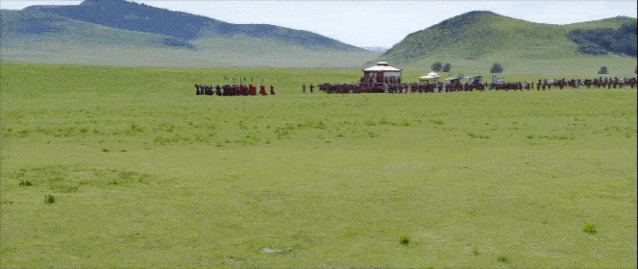 皇帝每次出门,大草原风光和各色帐篷的场景都是实景实拍,看起来特别壮阔。