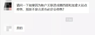 卖家A:我们也躺枪了,好几个账号被停了,都没卖过东西,有的加拿大被停,有的墨西哥被停,有的被全部停了。