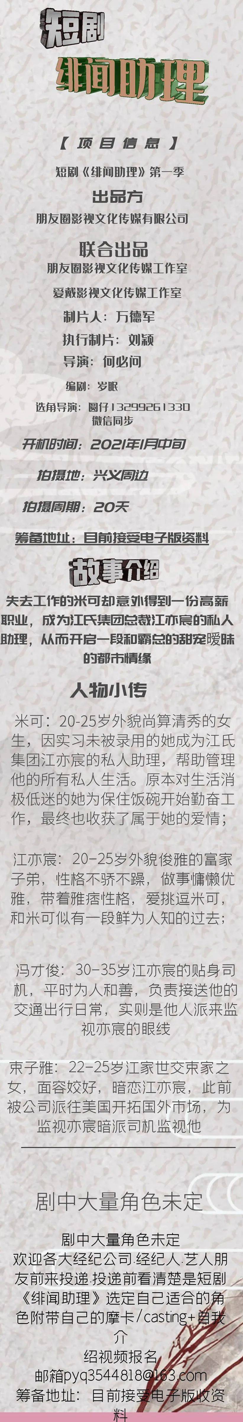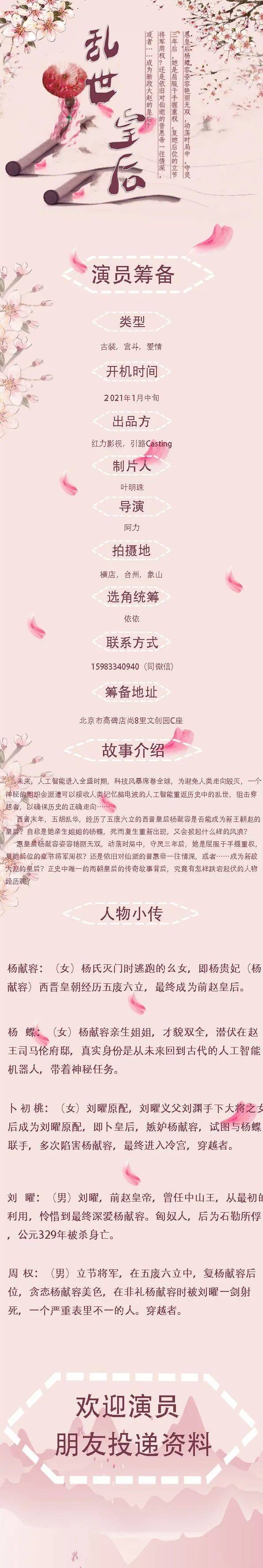 众多角色待定,欢迎各位经纪人、演员到访期待合作。