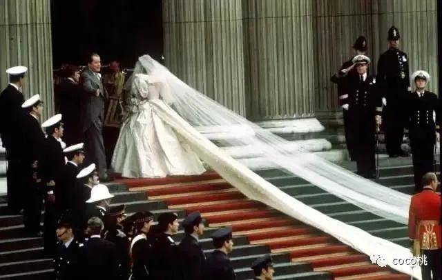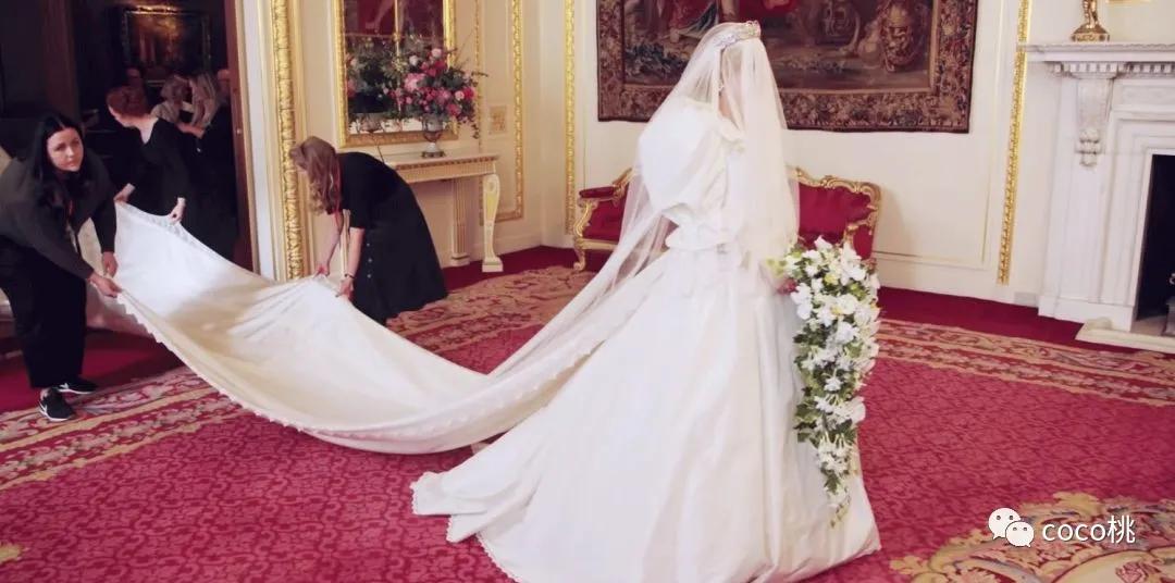 不仅长达7.62 米的裙摆,开创了皇室之最,还是英国皇室历史上最长的婚纱。