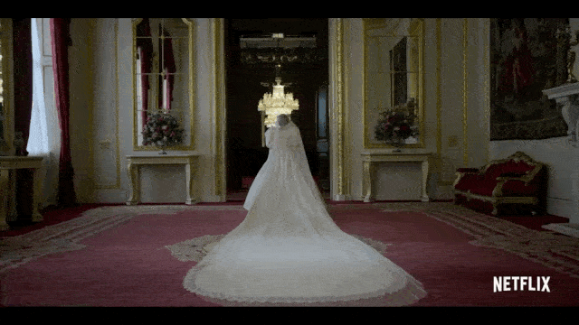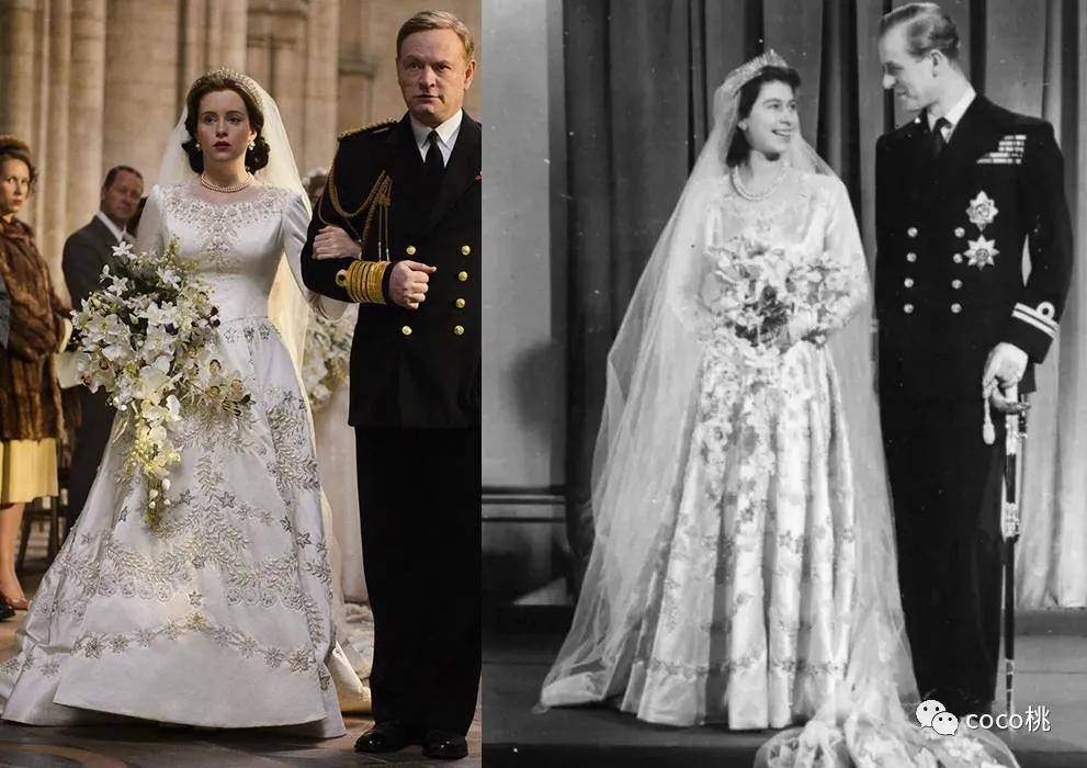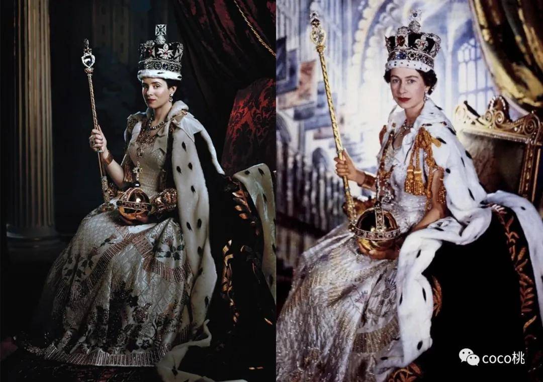 别再为这一季中戴妃的婚纱复原感到吃惊,因为在前面,女王的婚纱礼服和加冕礼服,才是一比一的还原。