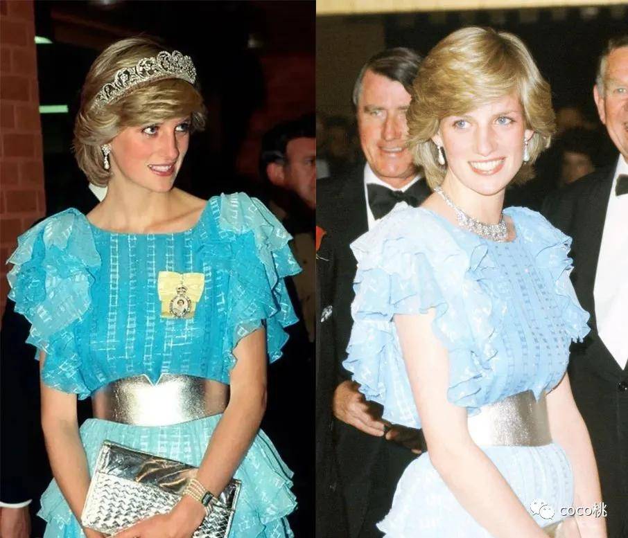 其次还有这条戴妃和查尔斯王子一同前往澳洲出访,参加舞会时身穿的这条水蓝色礼裙,也是不得不说的经典造型。