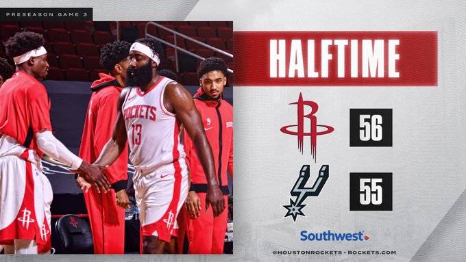火箭首节25比31落后马刺,而哈登在第二节一开场就来了个上篮得分,随后制造犯规两罚中一。