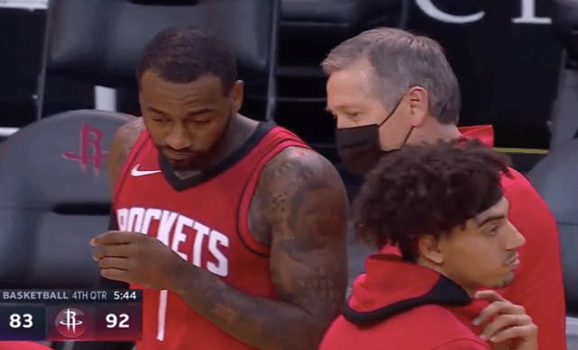 就在赛前,火箭突然宣布哈登因伤休战。哈登休战的原因是右脚踝扭伤,原来上场对阵国王的比赛中,他不小心踩到了沃尔的脚面上,扭到了右脚踝。两人合体出战的首场常规赛,显然有些默契不足,当时,两人的位置跑重叠了。