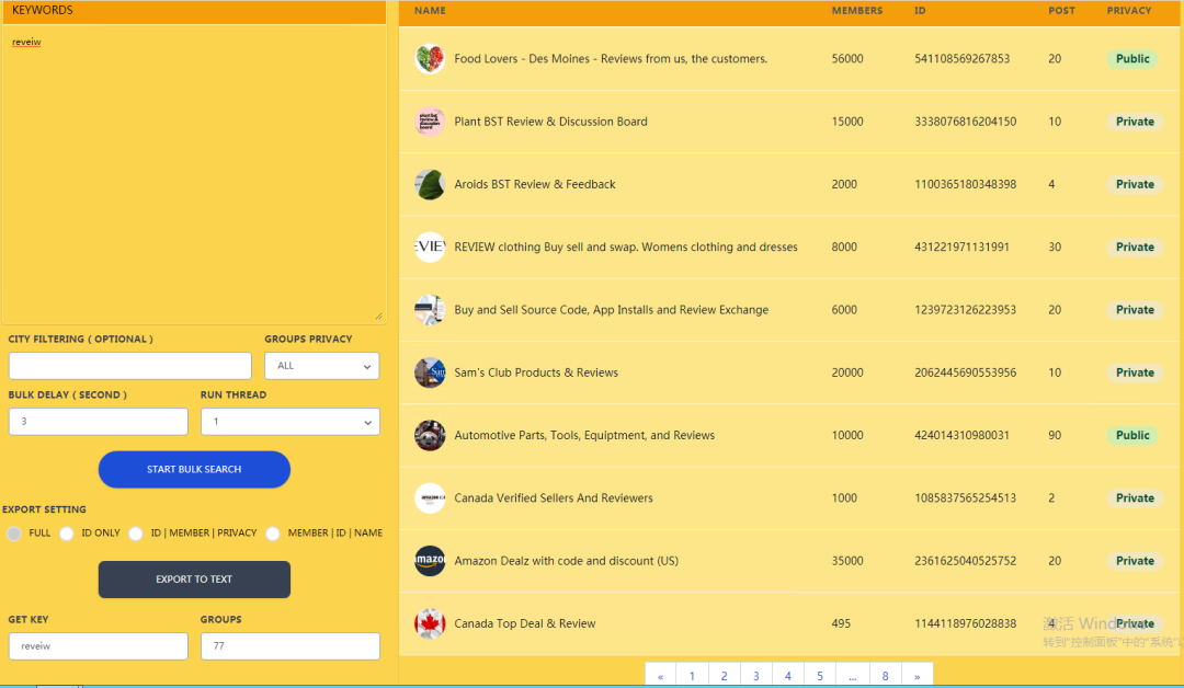 群组营销最好是多账号运营,每个账号管理多个群组。由于FB自带的功能比较弱,加多了会乱,所以管理起来很麻烦。这个问题同样可以通过第三方工具解决。比如下面这个工具,可以批量管理、备份群组数据,就算账号被封也可以找回之前加过的群组: