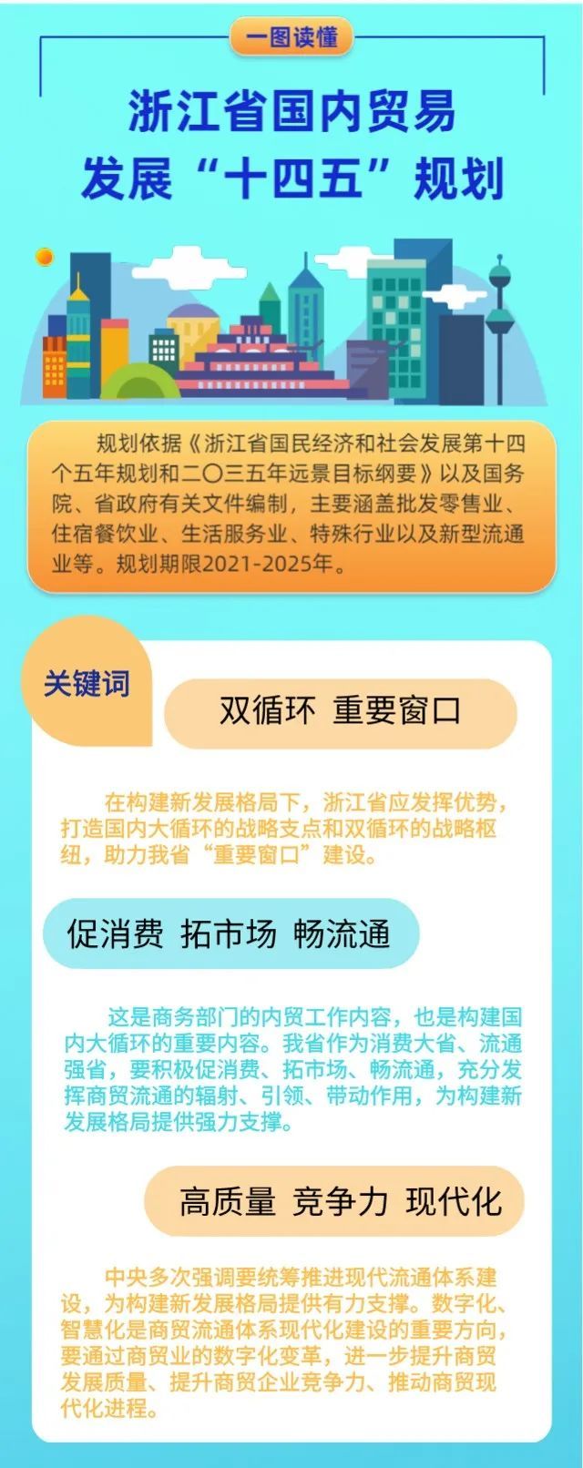 近日,省发展改革委、省商务厅联合印发了《浙江省国内贸易发展"十四五"规划》。
