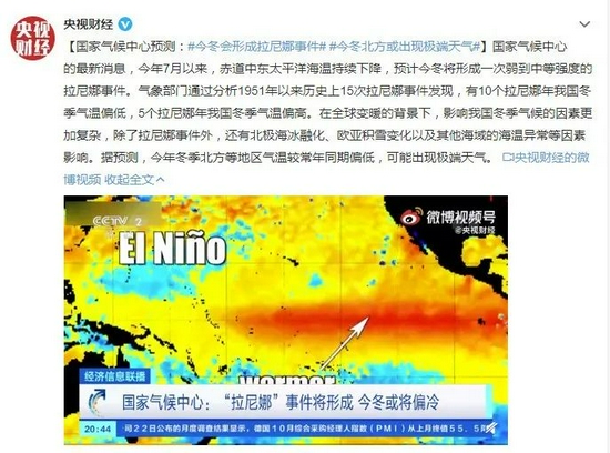 来源:新华社微博、中国气象局、混知(ID:hey-stone) 国家气候中心最新消息 今年7月以来 赤道中东太平洋海温持续下降 预计10月进入拉尼娜状态 并于冬季形成一次 弱到中等强度的拉尼娜事件 鉴于2020-2021年秋冬季 曾出现拉尼娜事件 2021年将是"双拉尼娜年" 在多数拉尼娜事件 达到盛期的冬季 影响我国的冷空气活动 比常年更加频繁 且强度偏强 我国中东