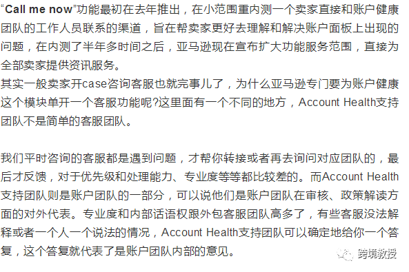 最近发布了新公告,称将新功能"Call me now"全面开放,现在只要是专业计划卖家都可以电话联系Account Health支持团队。