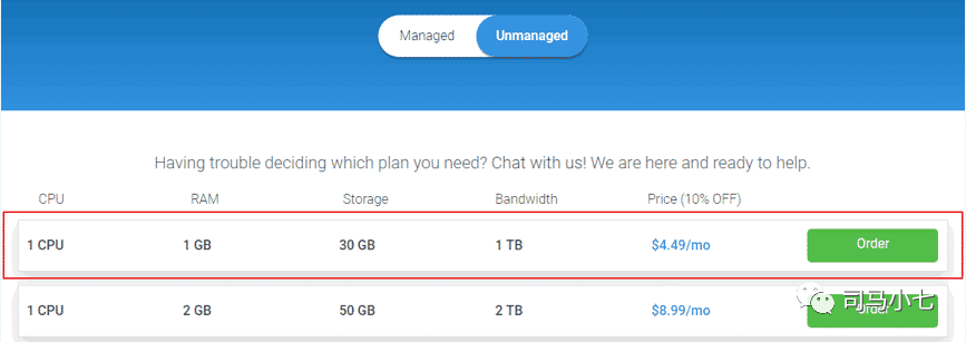 Unmanaged非托管型就是买个裸机VPS,随意DIY,包括系统在内的所有程序自己搭建(按流程很简单),在学会一些Linux的知识的同时还能省点钱,性价比较高。