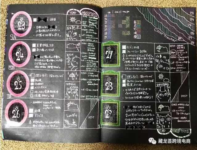 可在日本,几乎人人都会用手账产品而且记录方式不只是文字还会有很多漫画,画图,甚至手工贴纸如图: