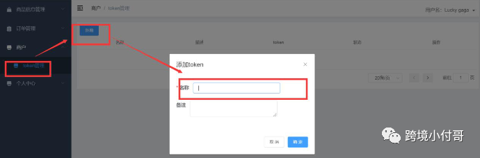 操作路径:商家后台-商品信息管理-商户-token管理点击【新增】,自定义token名并确认提交。