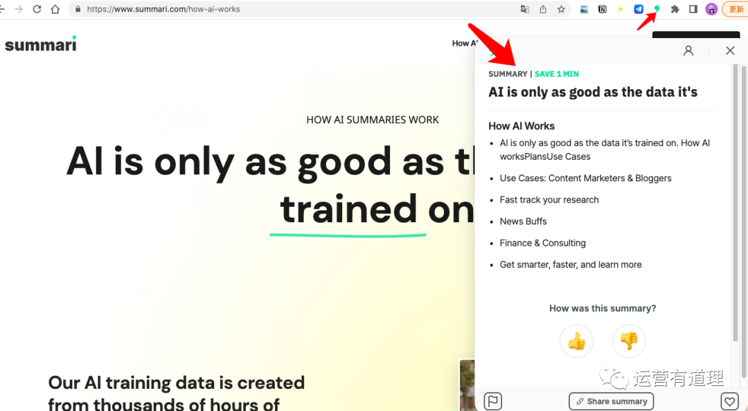 如下图,安装好插件,到达需要提炼要点的内容页面,点击插件,即可内容要点。