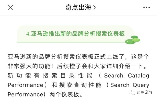 还记得往期一篇文章中我们提到亚马逊推出了新的品牌分析搜索仪表板吗?新的控制面板推出了搜索目录性能(全系商品搜索表现)与搜索查询性能(搜索词表现)两个仪表板,今天橙子将同大家一起探索这两个新功能!