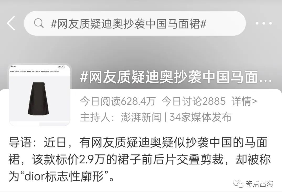 最近关于"迪奥抄袭中国马面裙"的新闻登上热搜榜,面对网友的质疑,官方的做法仅仅是将涉嫌抄袭的裙子在中国区下架,但在国外仍然正常销售。这种"文化挪用"的行为实在让人愤慨!