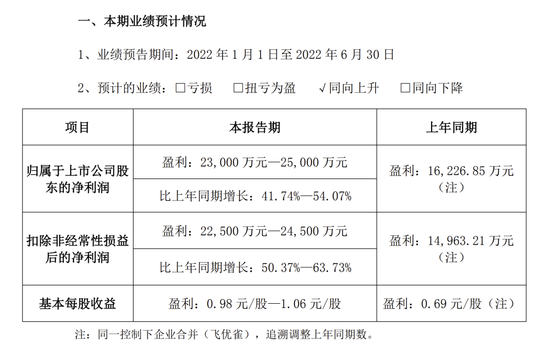 7 月 13 日奥海科技发布了《2022 年半年度业绩预告》,其净利润预计为