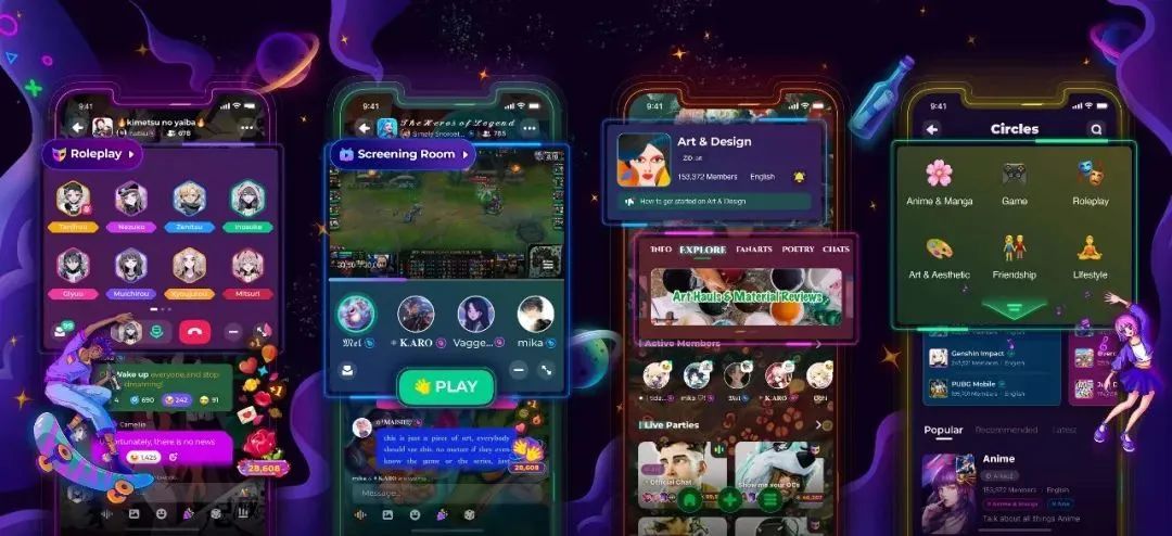Metaverse Z(应用名 Project Z)为追求自我表达、对群体归属感强的 Z 世代提供了基于兴趣、场景多维的社交空间,用户可以建立自网络身份,通过推荐匹配交友,进行实时语音聊天,发起和参与兴趣圈子、活动派对等。2021 年 10 月 36 氪出海曾报道,Metaverse Z 完成千万美元天使轮和 Pre A 轮融资。