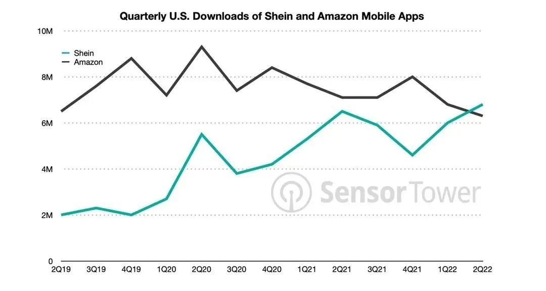 作为中国本土出海品牌的巨头,SHEIN这几年在跨境电商圈一时间可谓是风头无两。近期,据SensorTower数据显示,2022年第二季度,在线购物平台SHEIN的美国移动安装量超过亚马逊。SHEIN的下载量约为680万次,环比增长13%;亚马逊下载量则为630万次,下降7%。这也就意味着SHEIN进一步拓宽了美国市场的份额,迈向了一个全新的高地。