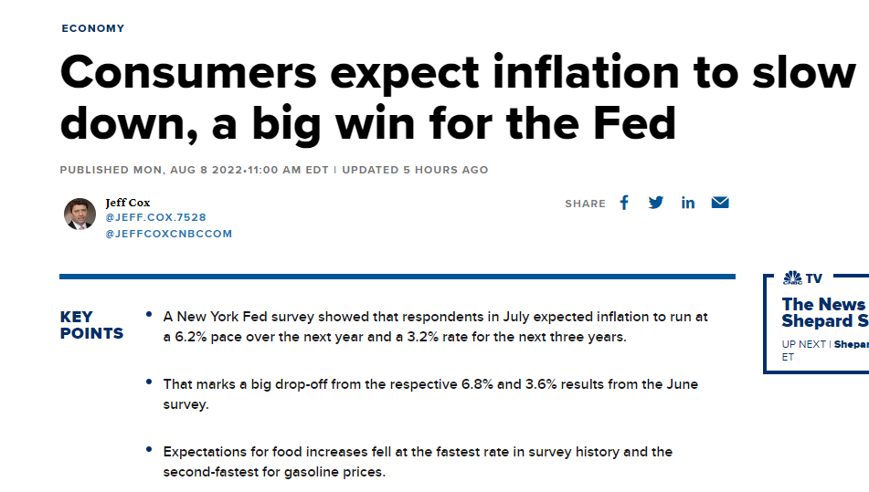 在今年美联储四次上调基准利率(总计2.25个百分点)之后,美国通胀的势头已经开始放缓。根据美联储的最新调查显示,大部分的受访者认为明年之前通胀率将会降到6.2%以下,并且将会逐步下降至3.6%左右。在对应通胀法案通过之后,这个进度将会被大大加快,美国将会很快走出恶性通胀的阴影。
