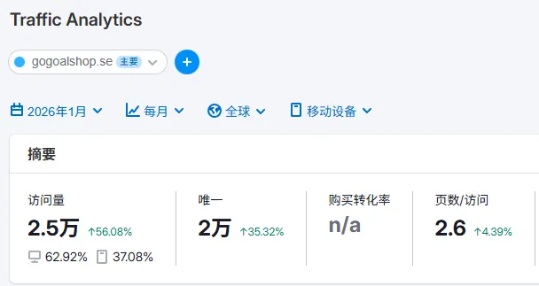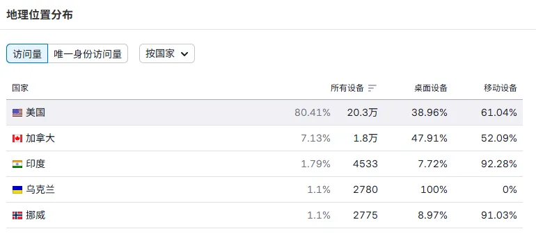 大家可以看到,行业大卖gogoalshop唯一用户的同比用户访问量增长7.2%并且来自美国和加拿大的客户数量暴增