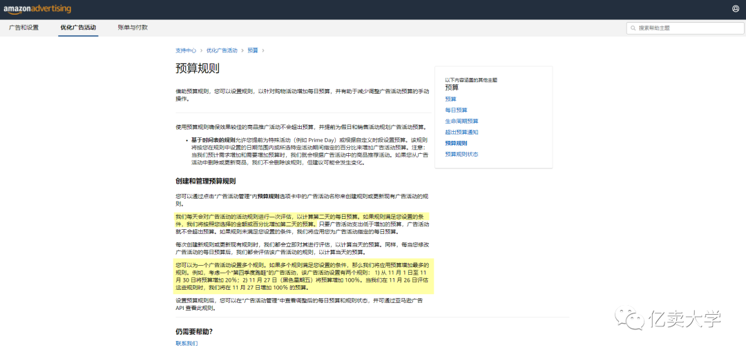 ▲ 来自亚马逊广告的"预算规则"介绍