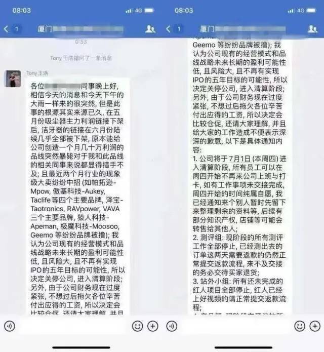 铁子们晚上好,近日卖家被封号得消息依旧不断。网上又一销量不错的卖家,因为盈利的主力品牌被封,导致资金链有问题,不得不解散公司。流传的截图内容大致是:五月吸尘器主力利润链接下架,六月洁牙器的链接几乎全部被下架。创始人对公司未来的长期盈利模式不看好,且未来5年IPO的可能性低,最终做出了解散公司的决定。