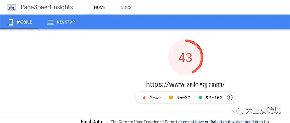 2.网站打开速度慢,我用Google Page Speed Insight 工具给客户测了下速度,哎妈呀,一测吓一跳,移动端得分40来分,PC端还凑合80分。