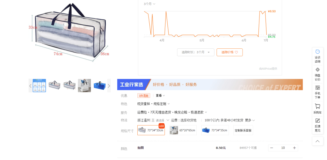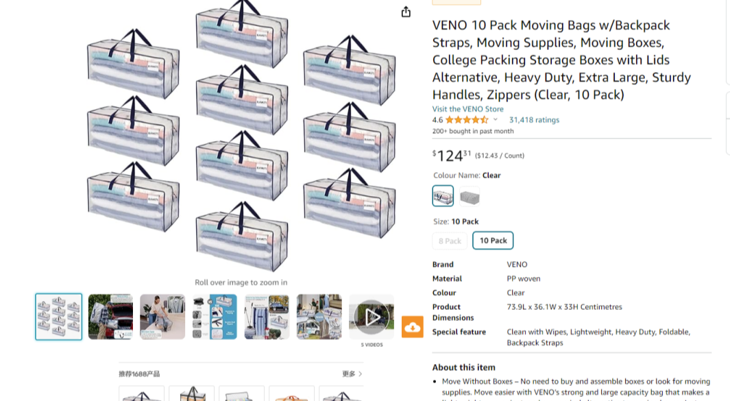 在搬运袋类目中排名(1)——家居类目中排名(801)