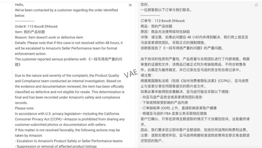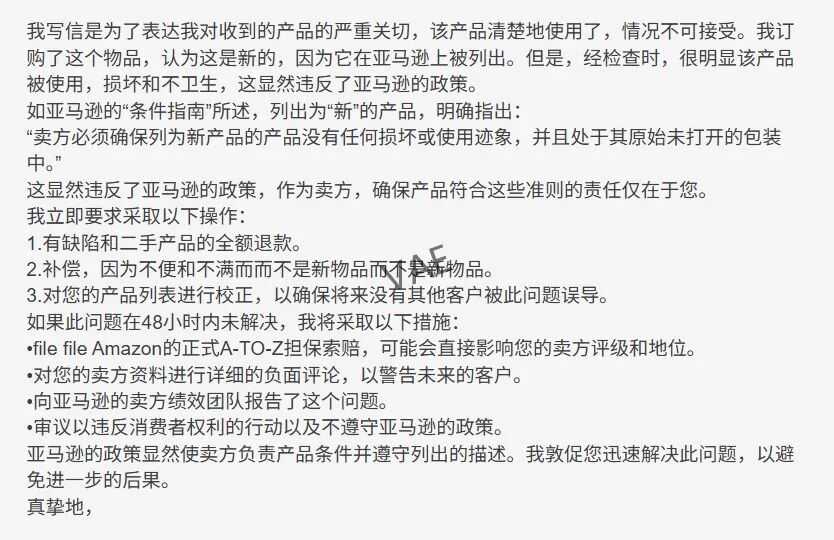 4. 过度使用专业术语: 比如订单缺陷率(ODR)、"A to Z"等,这些连部分卖家都不熟悉,普通买家更不可能轻易掌握。这说明他们更像是在套用现成的索赔话术。