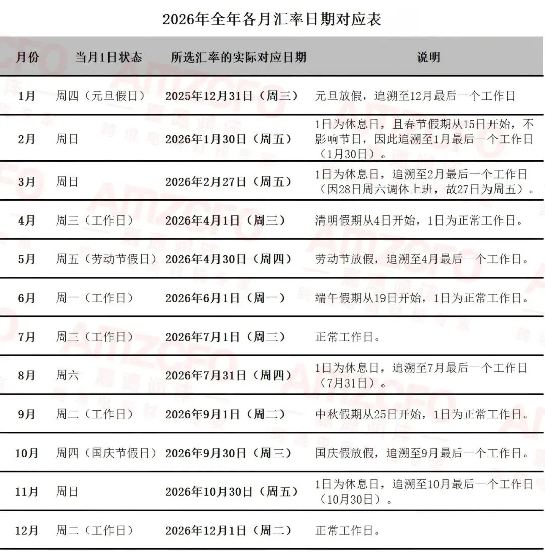 若当月1日为非工作日的,有效汇率为上月最后一个工作日汇率,而非当月首个工作日